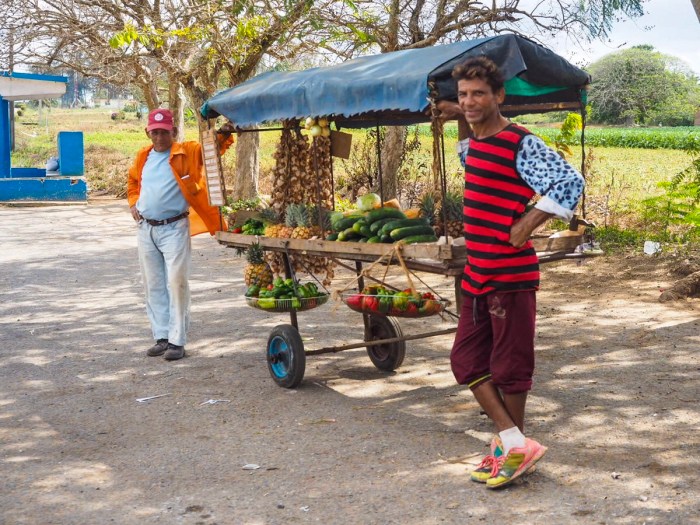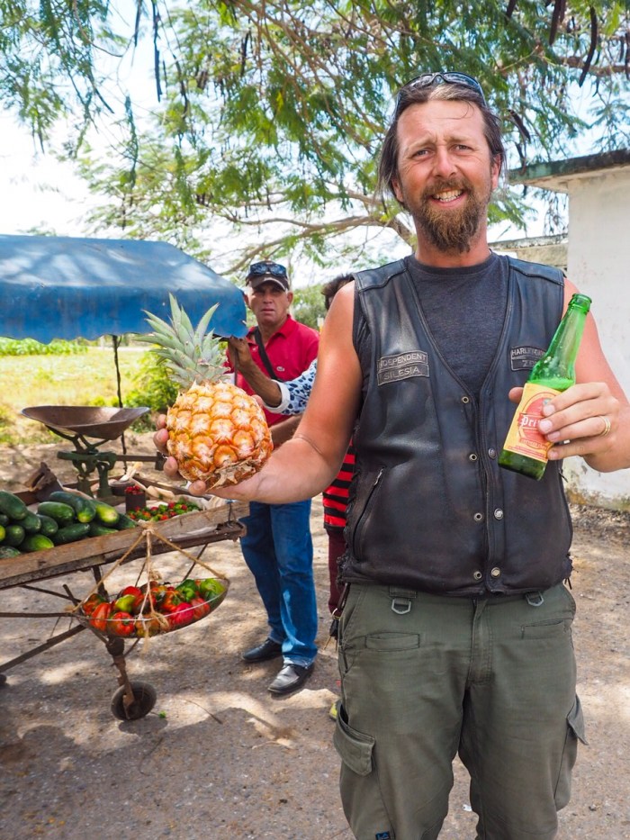 Jadąc w kierunku Vinales zatrzymujemy się na chwilę ugasić pragnienie i kupić ananasa – chyba najlepszego jakiego jedliśmy w życiu!